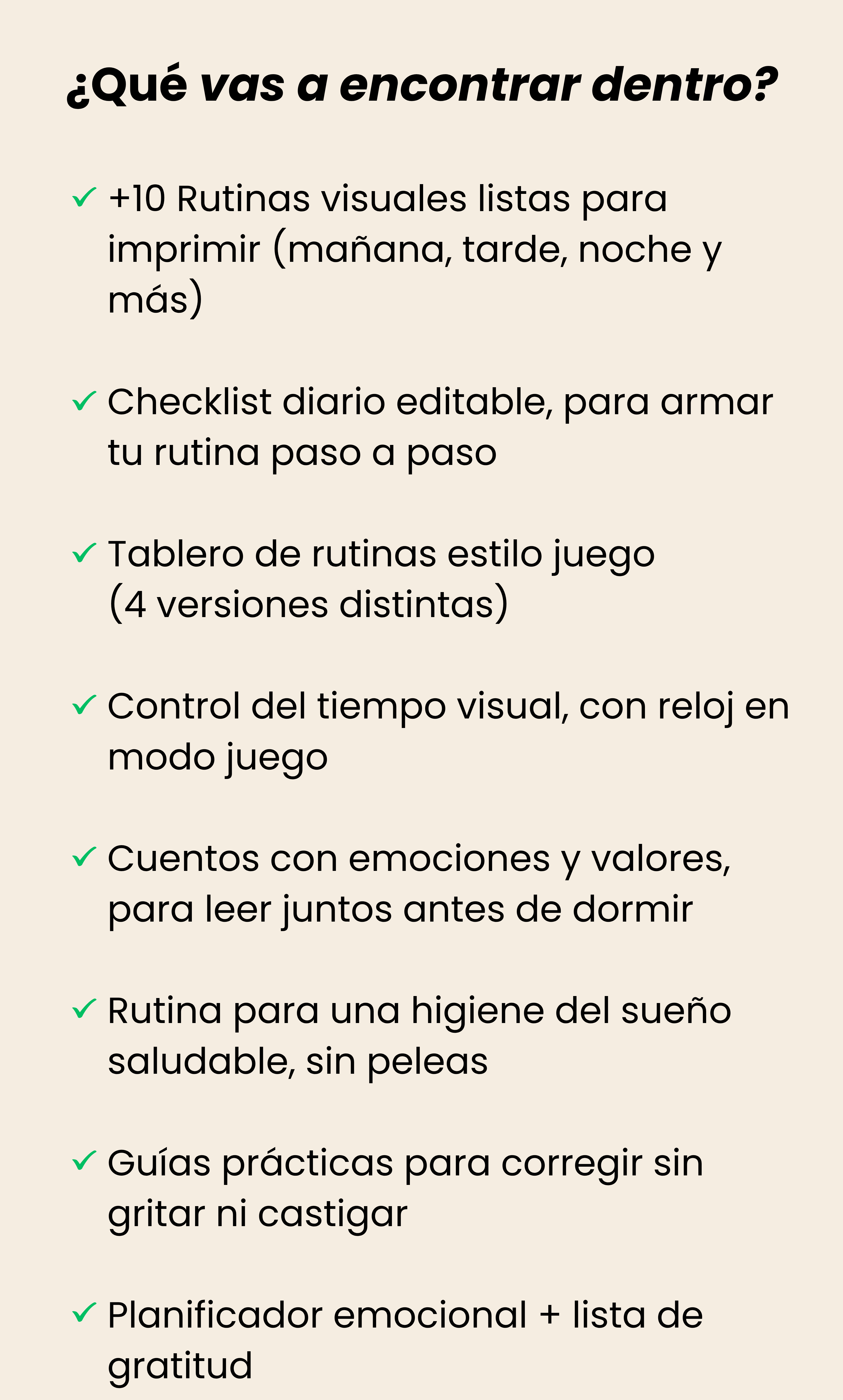Todo está pensado para ayudarte a criar con amor y estructura, sin gritos ni culpa.